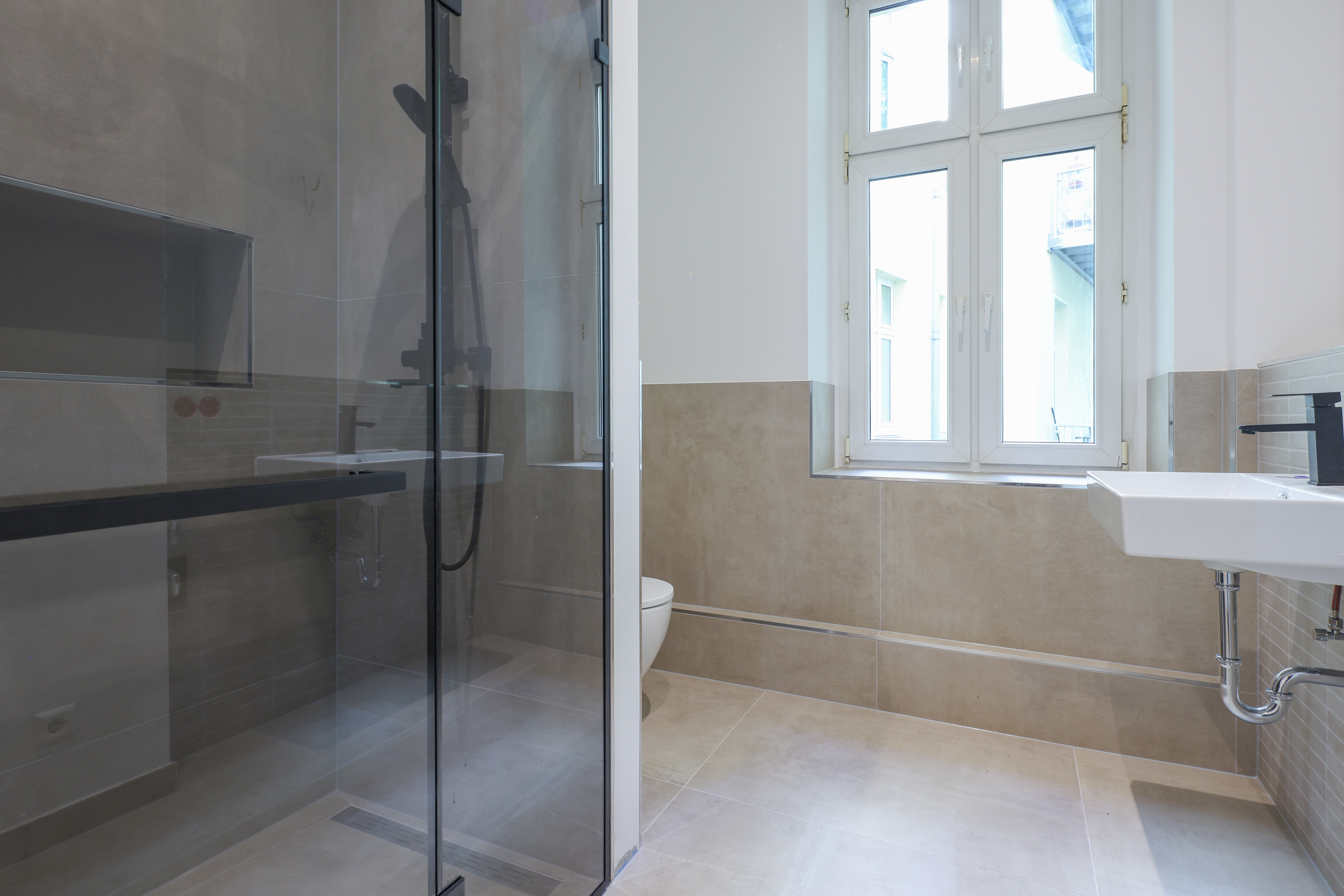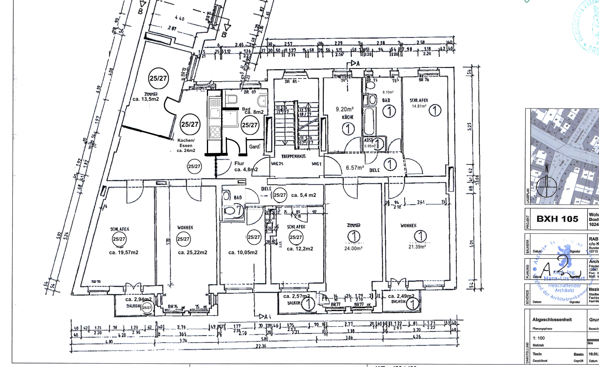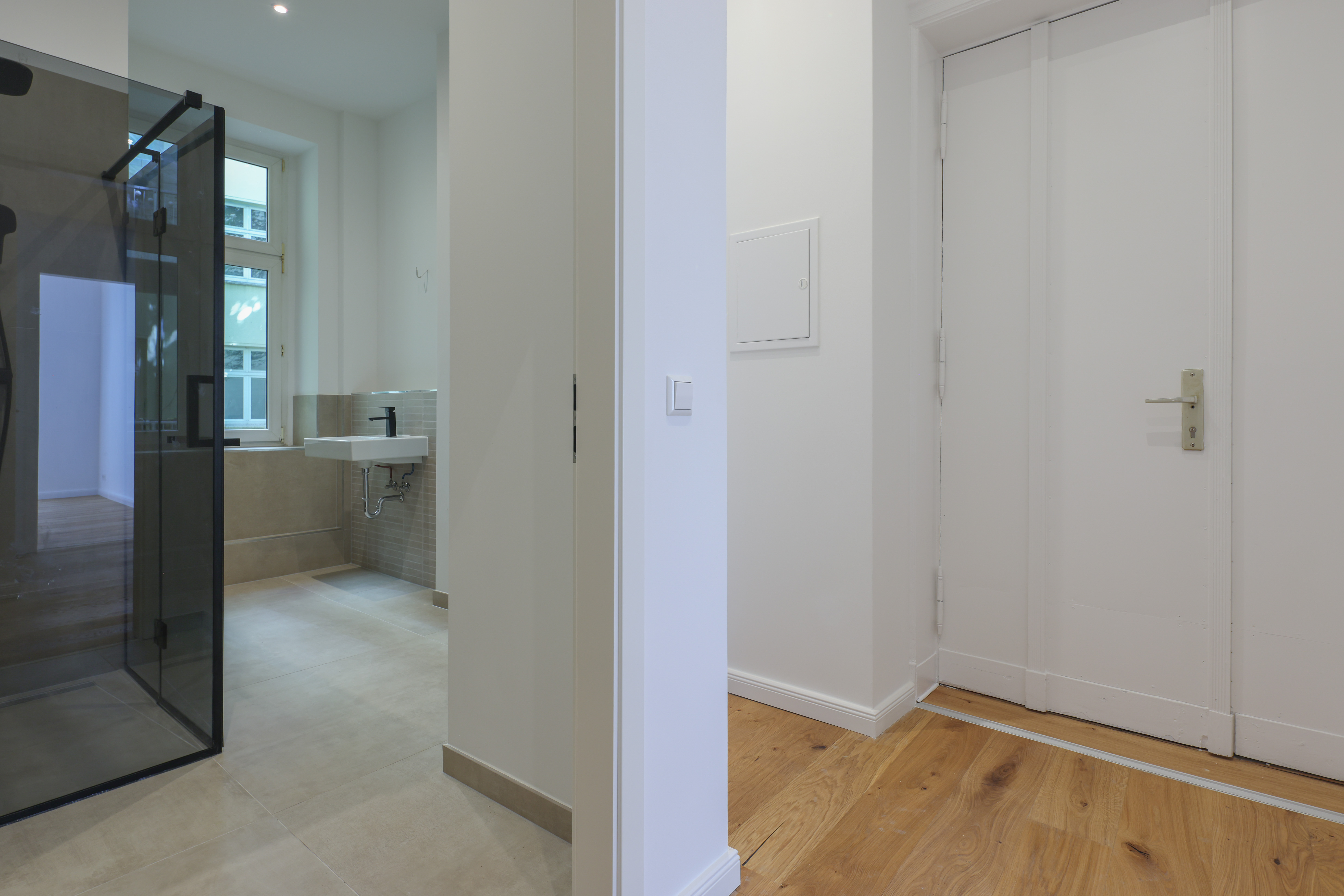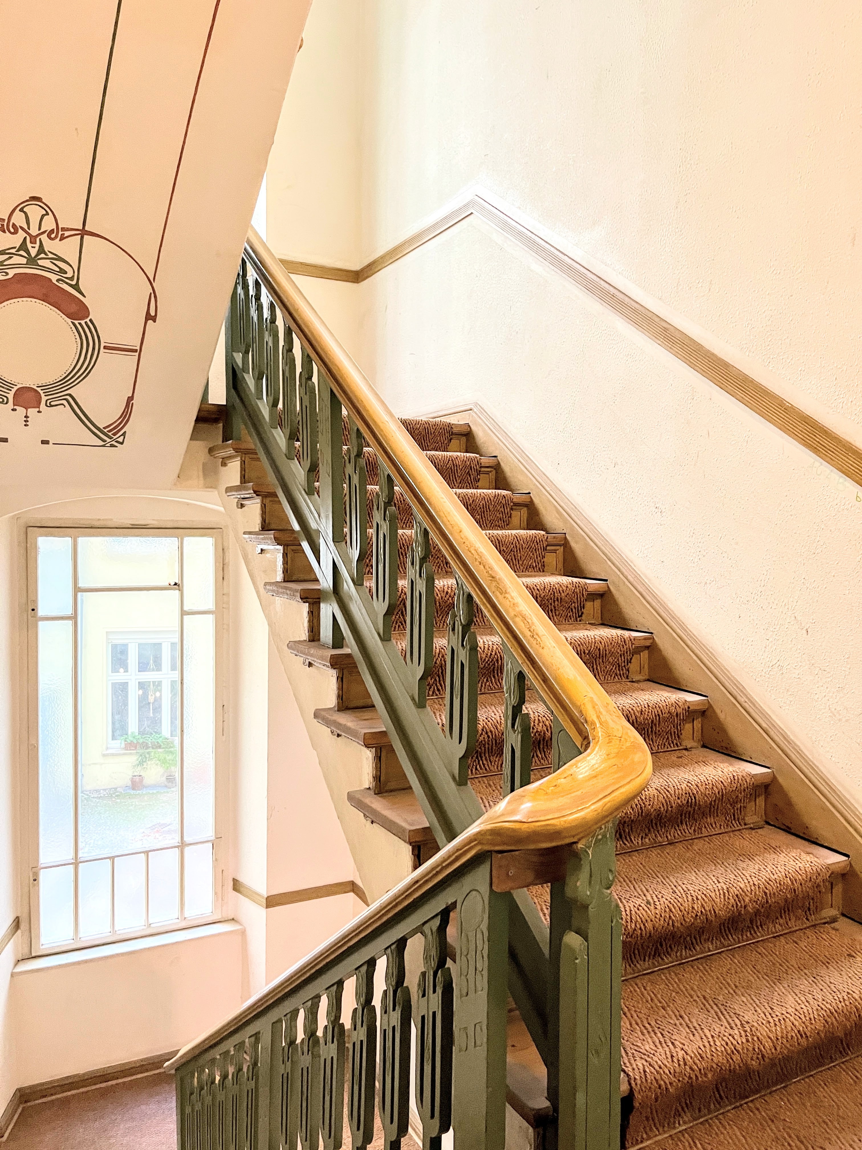 This is a typical Berlin old building, with a front building, a cross building and a rear building. The entrance area and the staircase, with its stucco and art nouveau paintings, were refurbished with great attention to detail. In total, the building comprises 24 old building apartments and 3 commercial units. The property is heated with district heating.