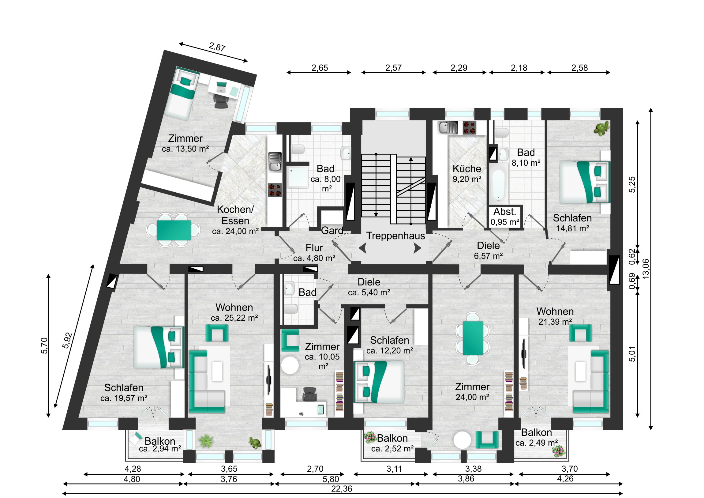 Verkauft werden 220 m2 Wohnfläche im 1.OG: