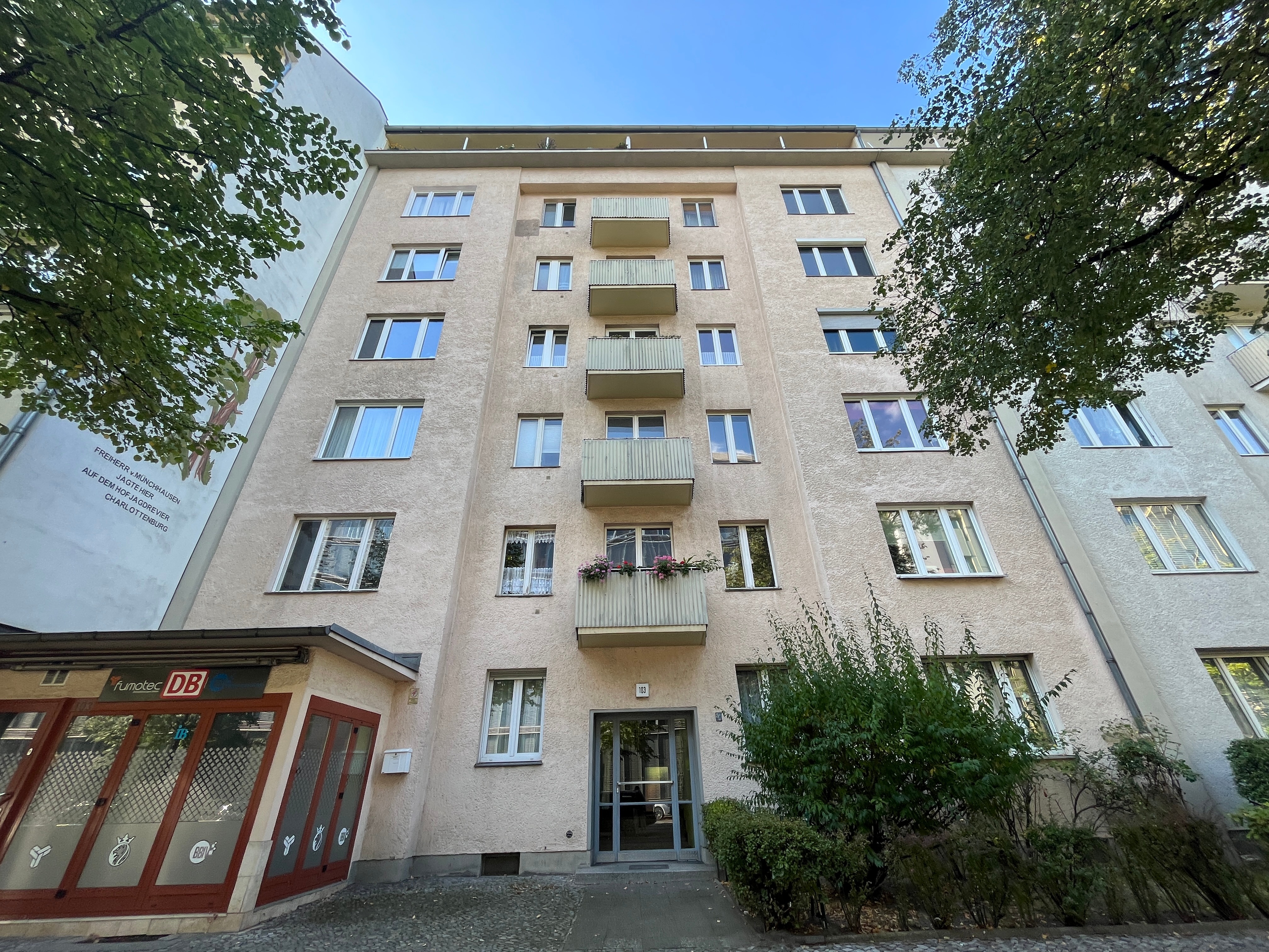 The residential complex is located in the heart of Charlottenburg, not far from Ernst-Reuter-Platz. The area is known for its mix of historic charm and urban flair and is characterized by good connections to the public transport network and proximity to many amenities. You can reach the "Deutsche Oper" subway station after 500 meters, while the Charlottenburg S-Bahn and regional train station, 1.8 km away, offers further transportation options.