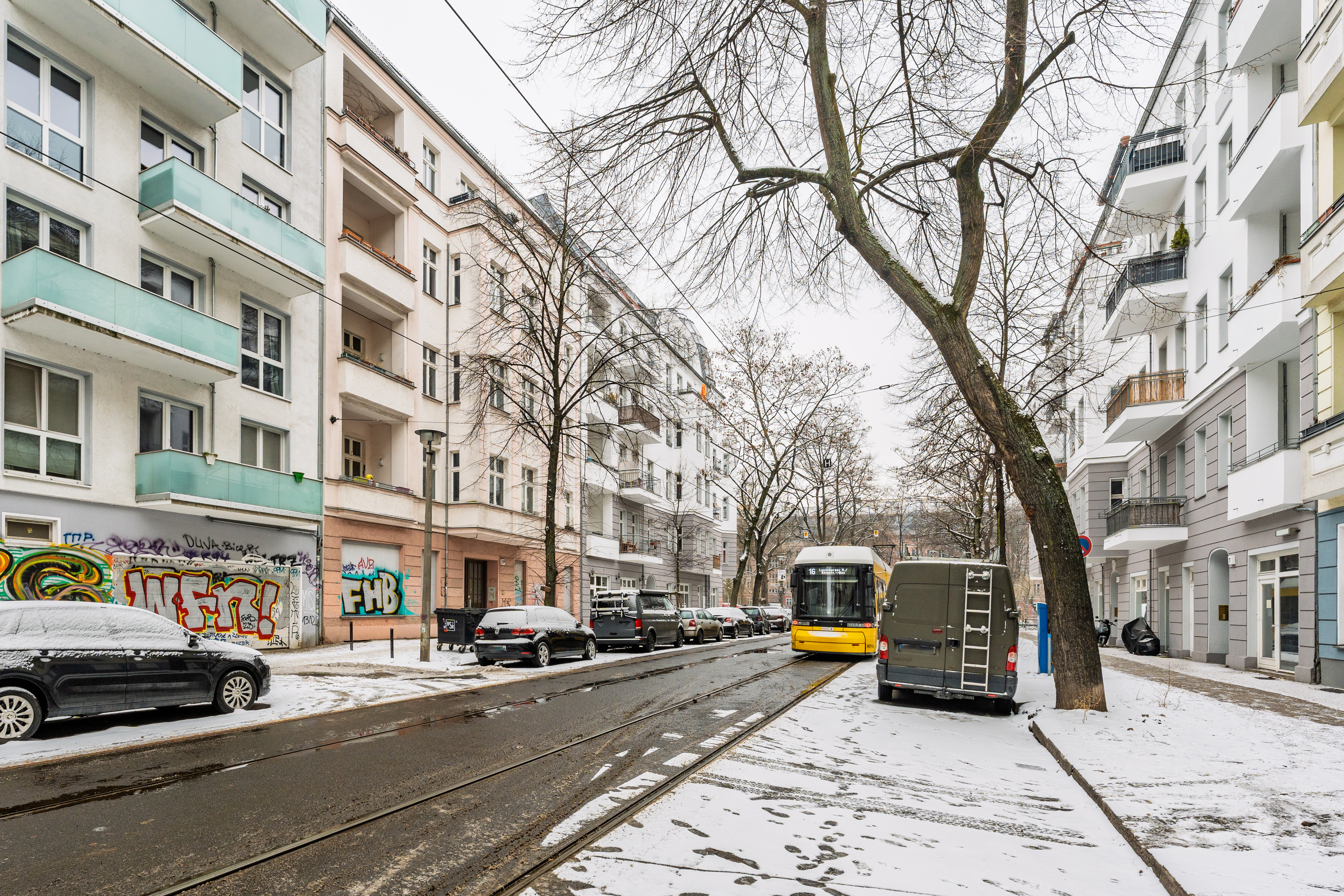 Die Etagenwohnung befindet sich im lebendigen Stadtteil Friedrichshain in Berlin. Friedrichshain zeichnet sich durch seine vielfältige Kulturszene, zahlreiche Restaurants, Cafés und Bars sowie grüne Oasen wie den Volkspark Friedrichshain aus. Die unmittelbare Umgebung der Wohnung bietet eine gute Anbindung an öffentliche Verkehrsmittel, Einkaufsmöglichkeiten und Schulen.
