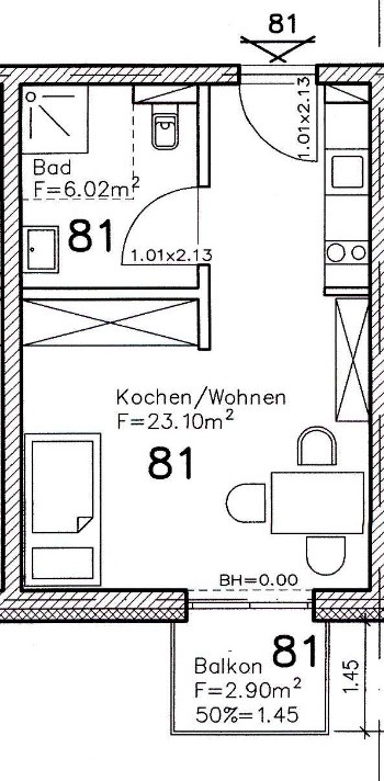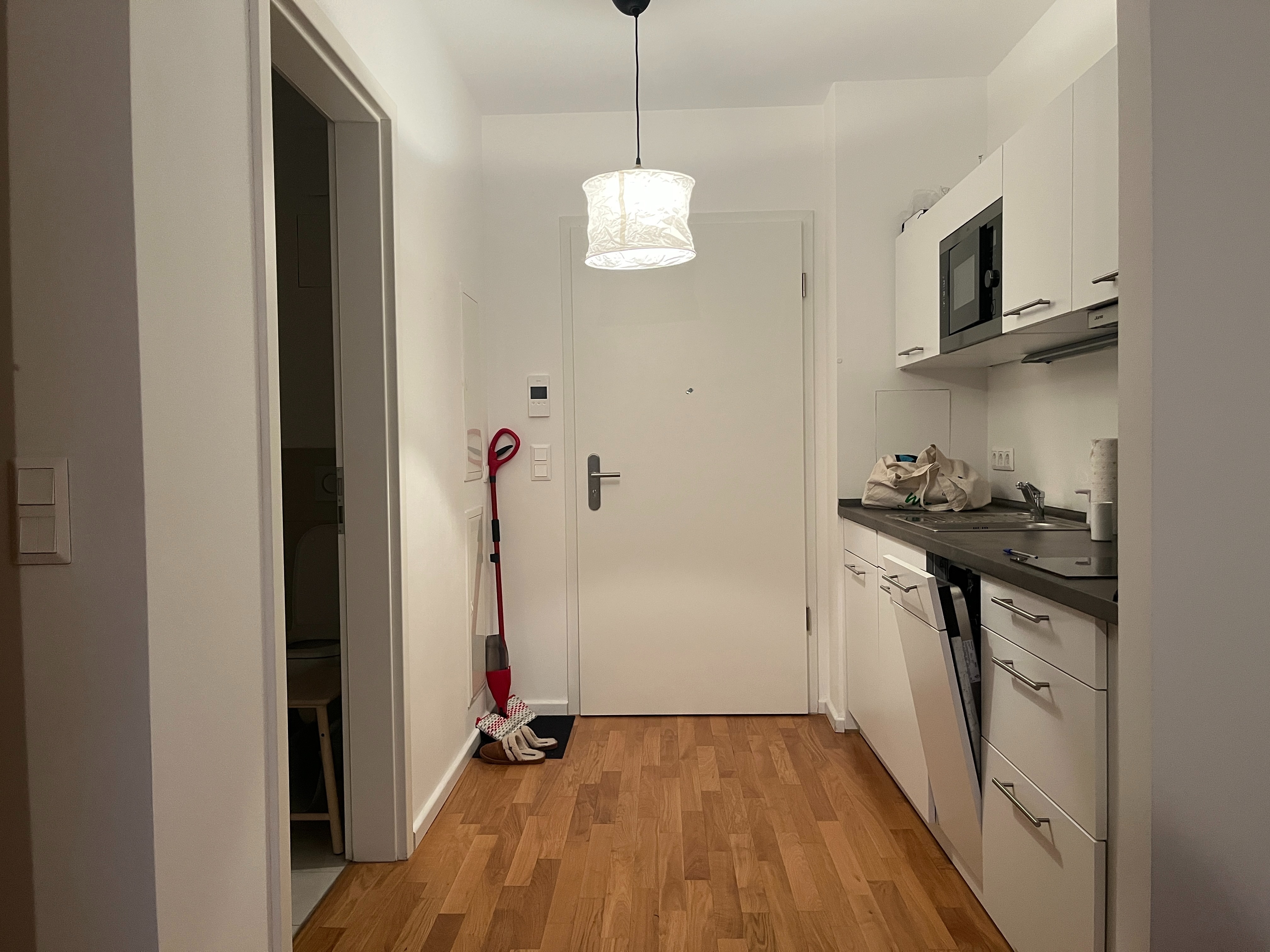 Das moderne 1-Zimmer-Apartment befindet sich im 3. Obergeschoss und verfügt über eine Wohnfläche von ca. 30,57 m². Der Wohnbereich ist mit einem behaglichen Parkettboden ausgestattet, der eine warme und freundliche Wohnatmosphäre schafft. Die großen Fenster lassen viel Tageslicht in den Raum und sorgen für eine helle Wohnqualität. Ein weiteres Highlight ist die voll ausgestattete Einbauküche, die mit Ober- und Unterschränken, einem Kochfeld, einer Mikrowelle sowie einer Spüle eingerichtet ist. Hierdurch bietet die Wohnung alles, was für den täglichen Bedarf notwendig ist – auf kompaktem Raum und funktional durchdacht. Das modern geflieste Bad ist mit einer bodengleichen Dusche, einem WC und einem Waschbecken ausgestattet. Dank der optimalen Raumaufteilung wird die Wohnfläche effizient genutzt und schafft trotz der Größe eine gemütliche und moderne Atmosphäre. Der zum Innenhof ausgerichtete Balkon lädt zum Verweilen ein.