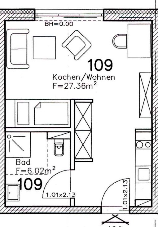 Das moderne 1-Zimmer-Apartment befindet sich im 5. OG und verfügt über eine Wohnfläche von ca. 33,38 m².
