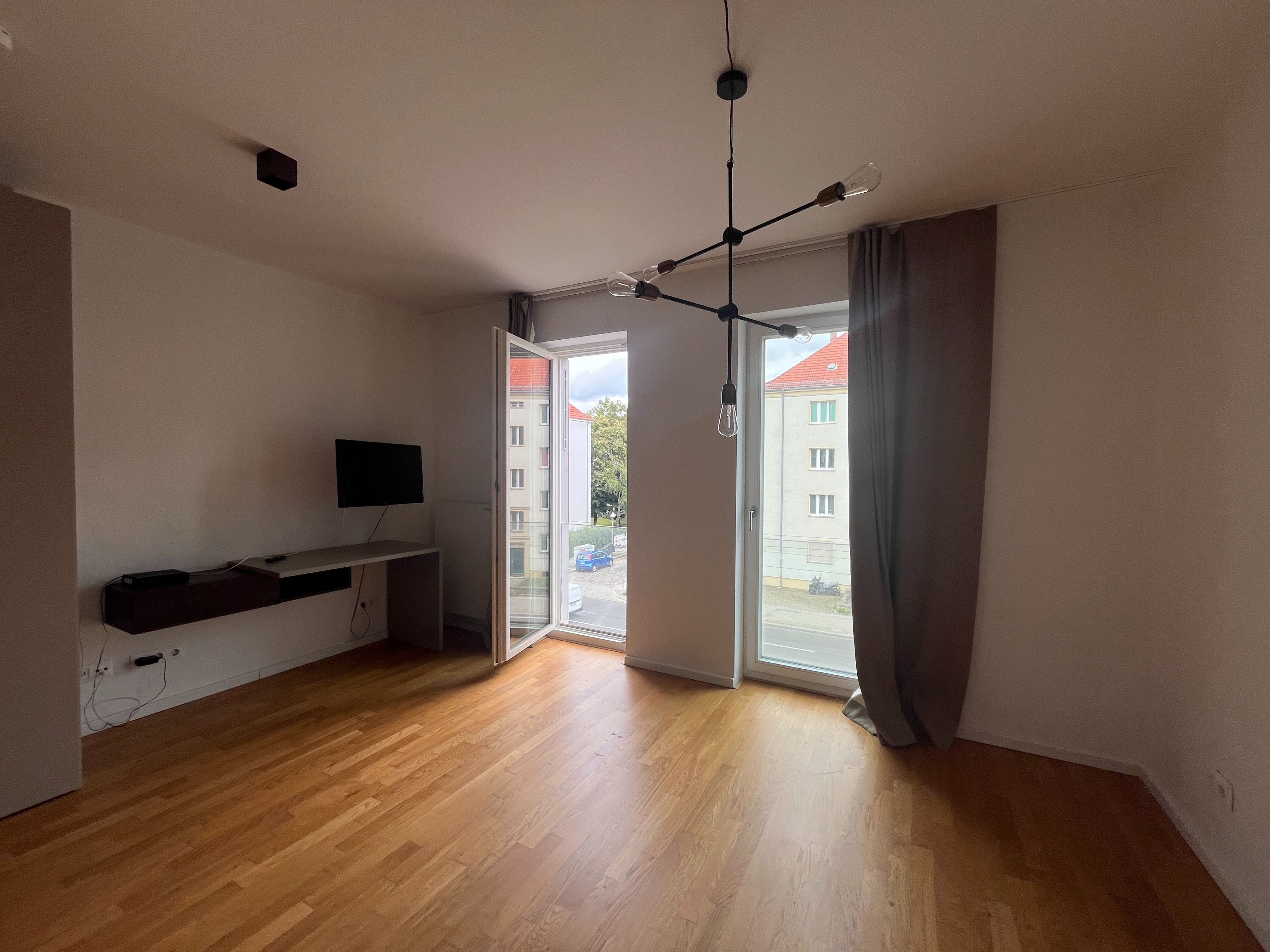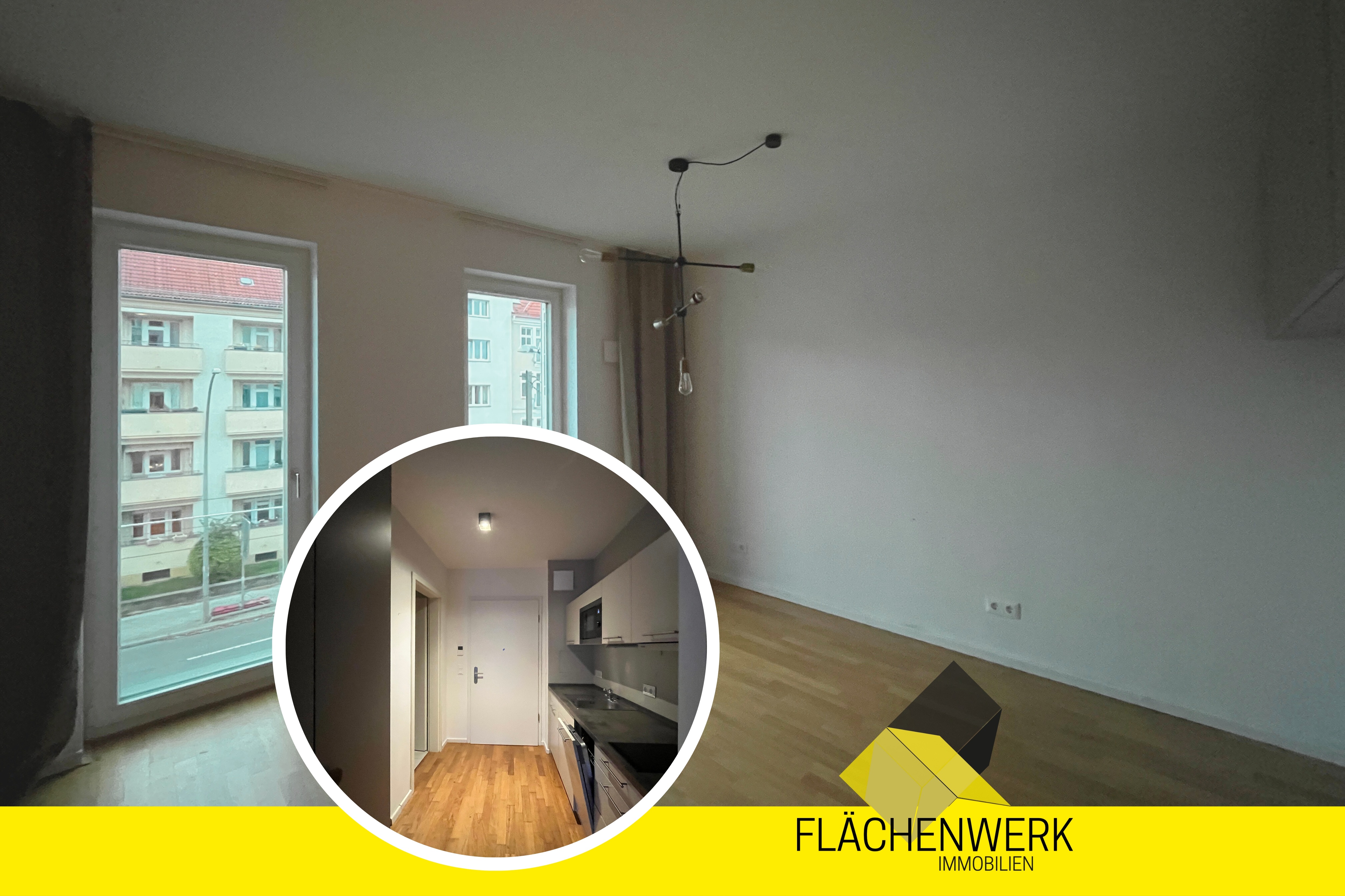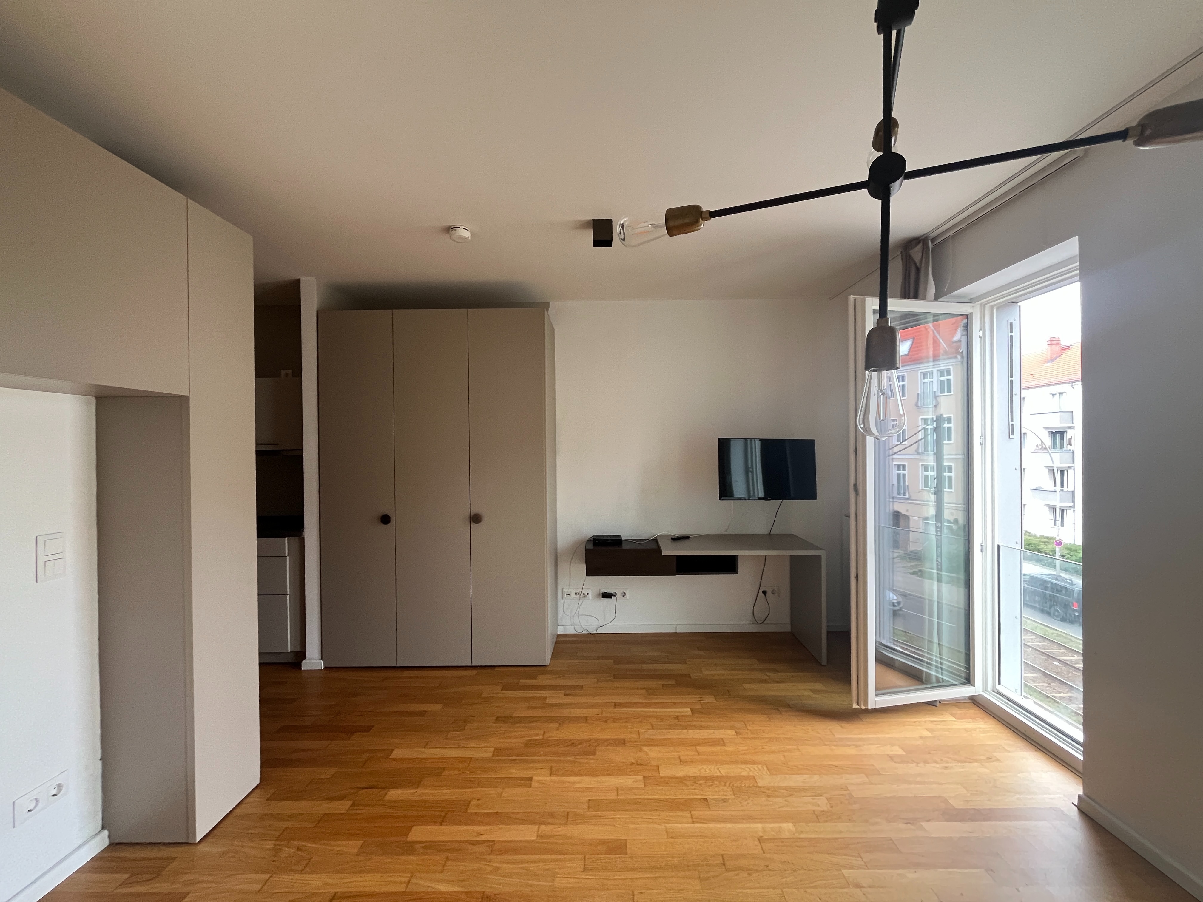 Das moderne 1-Zimmer-Apartment befindet sich im 2. Obergeschoss und verfügt über eine Wohnfläche von ca. 29,12 m². Das Fenster ist zur Lindenstraße ausgerichtet.