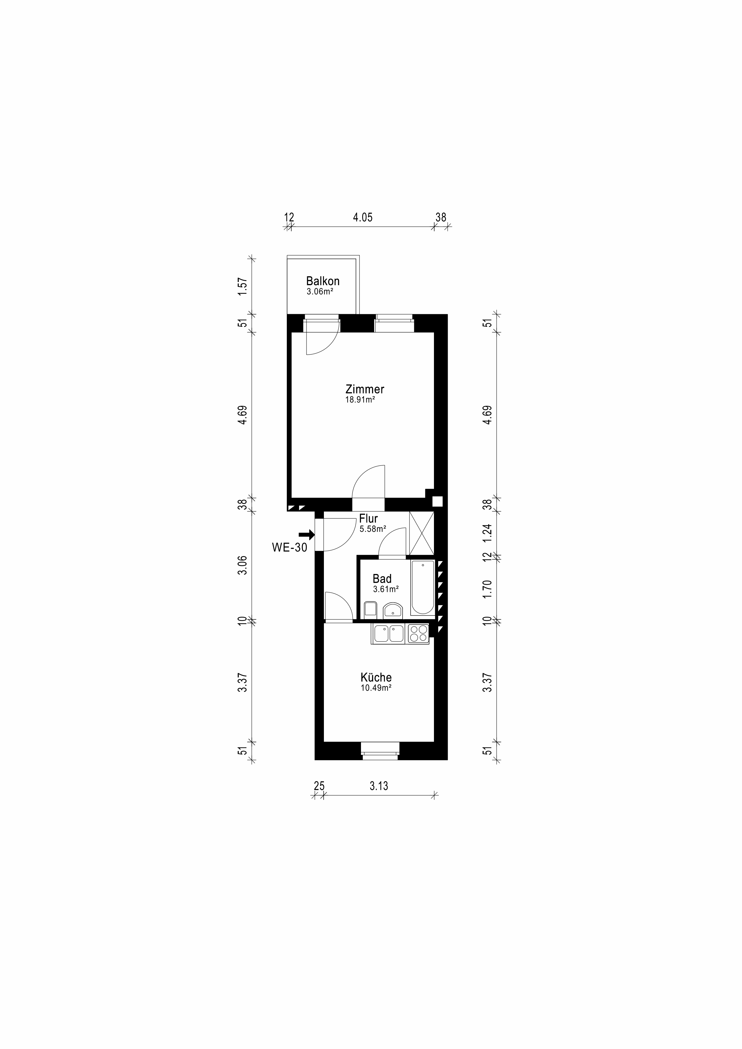 Die hier angebotene 1-Zimmer-Wohnung befindet sich im 3. Obergeschoss und besticht durch ihren funktionalen Grundriss. Beim Betreten der Wohnung gelangt man in einen einladenden Flur, von dem aus alle Räume bequem erreichbar sind: Auf der rechten Seite befinden sich die separate Küche sowie das innenliegende Badezimmer. Linkerhand öffnet sich der helle und geräumige Wohn- und Schlafbereich mit Zugang zum Balkon.