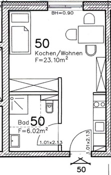 Die Möblierung umfasst u. a. zwei Einzelbetten, welche sich jedoch zu einem Doppelbett zusammenschieben lassen, einen Sessel sowie einen Schreibtisch, womit die Wohnung bereits eine praktische Grundausstattung für den sofortigen Einzug bietet.